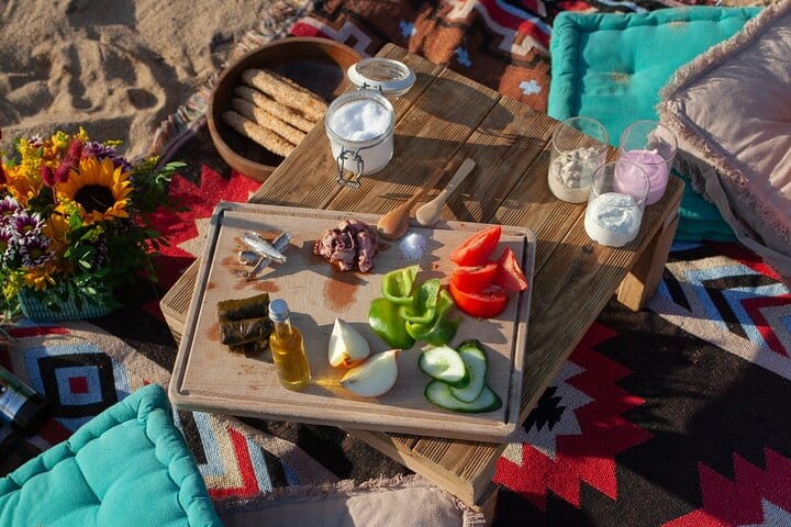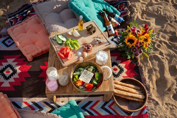 We invite you to enjoy our authentic Meze Experience on the beach accompanied by White Wine or Greek Bubbles.
