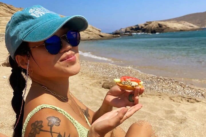 Located on a secret beach with crystal clear waters, fresh air and amazing sea life, you will have the chance to taste Fish Myconian mezes with a local.